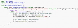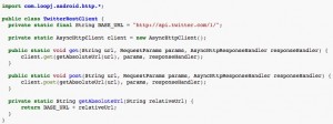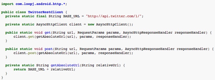 官方推薦的使用方法,使用一個(gè)靜態(tài)的請(qǐng)求對(duì)象,我們來看看官方例舉的一個(gè)訪問Twitter的API的例子: